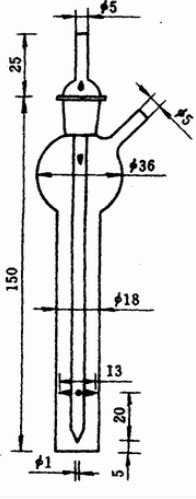 性能要求:内管和外管的接口应是标准磨口;内管应垂直于外管管底,出气口的内径为1.0mm±0.1mm,管尖距外管底5.0mm±0.1mm;固定小突应牢固。