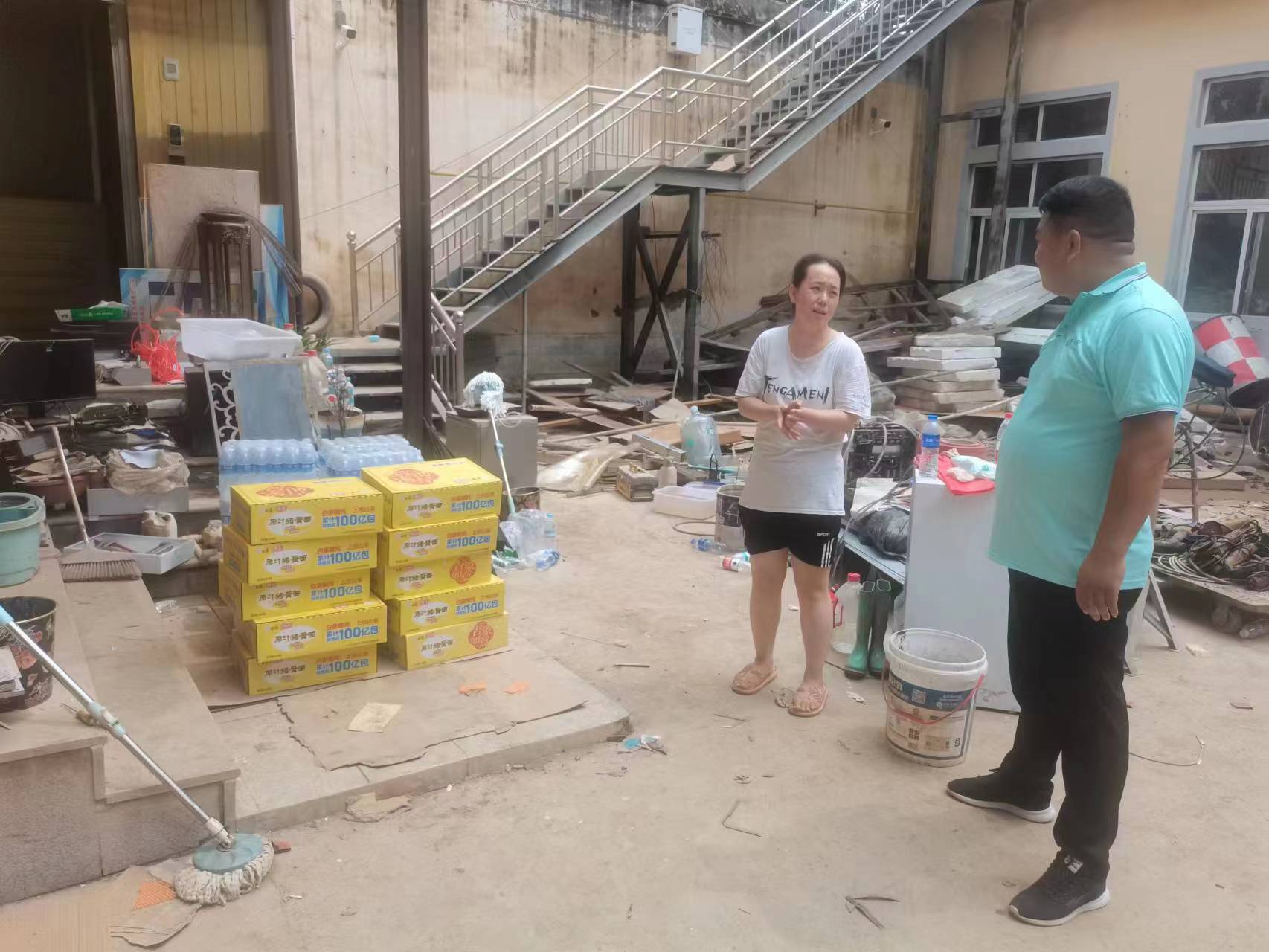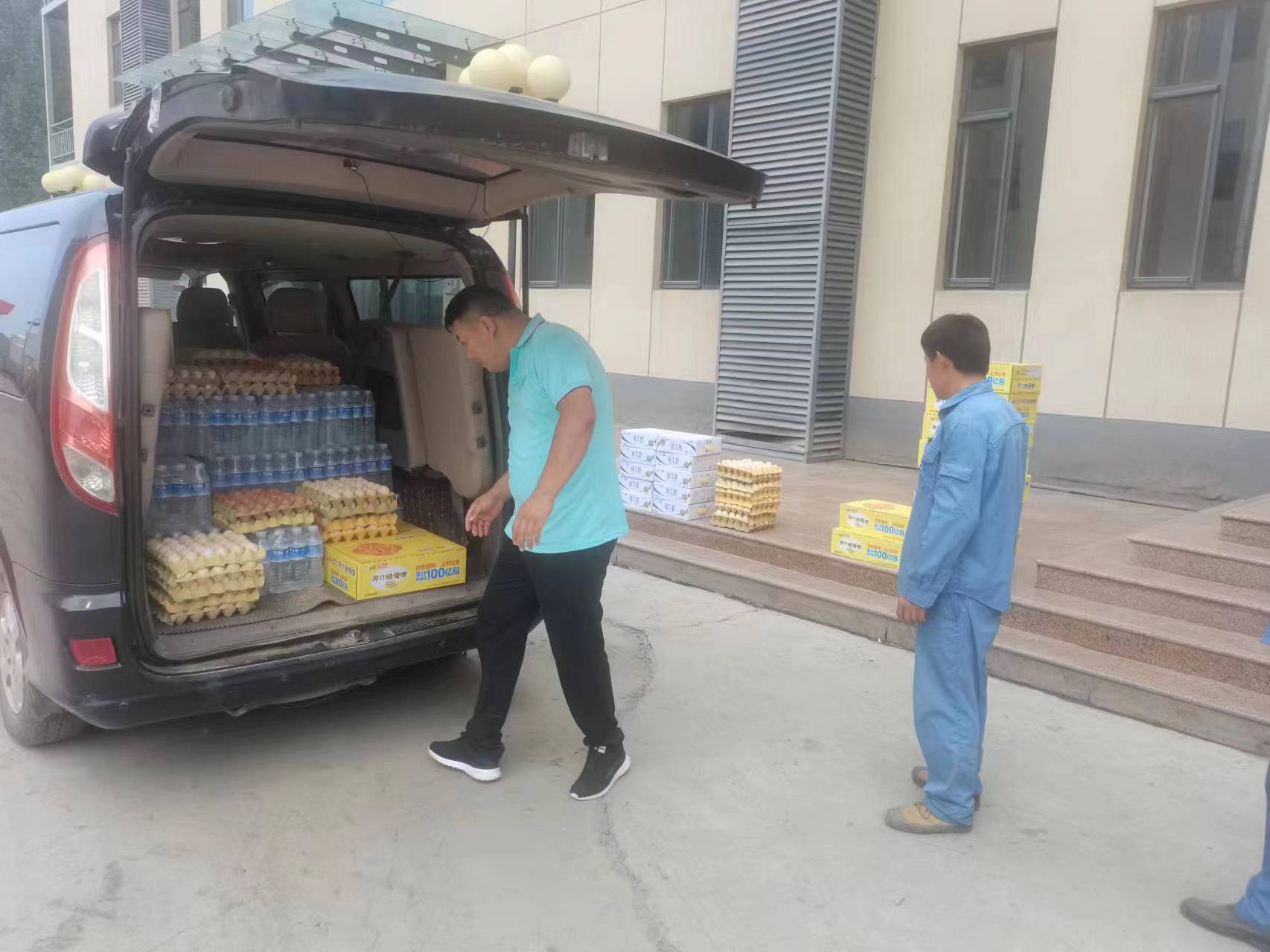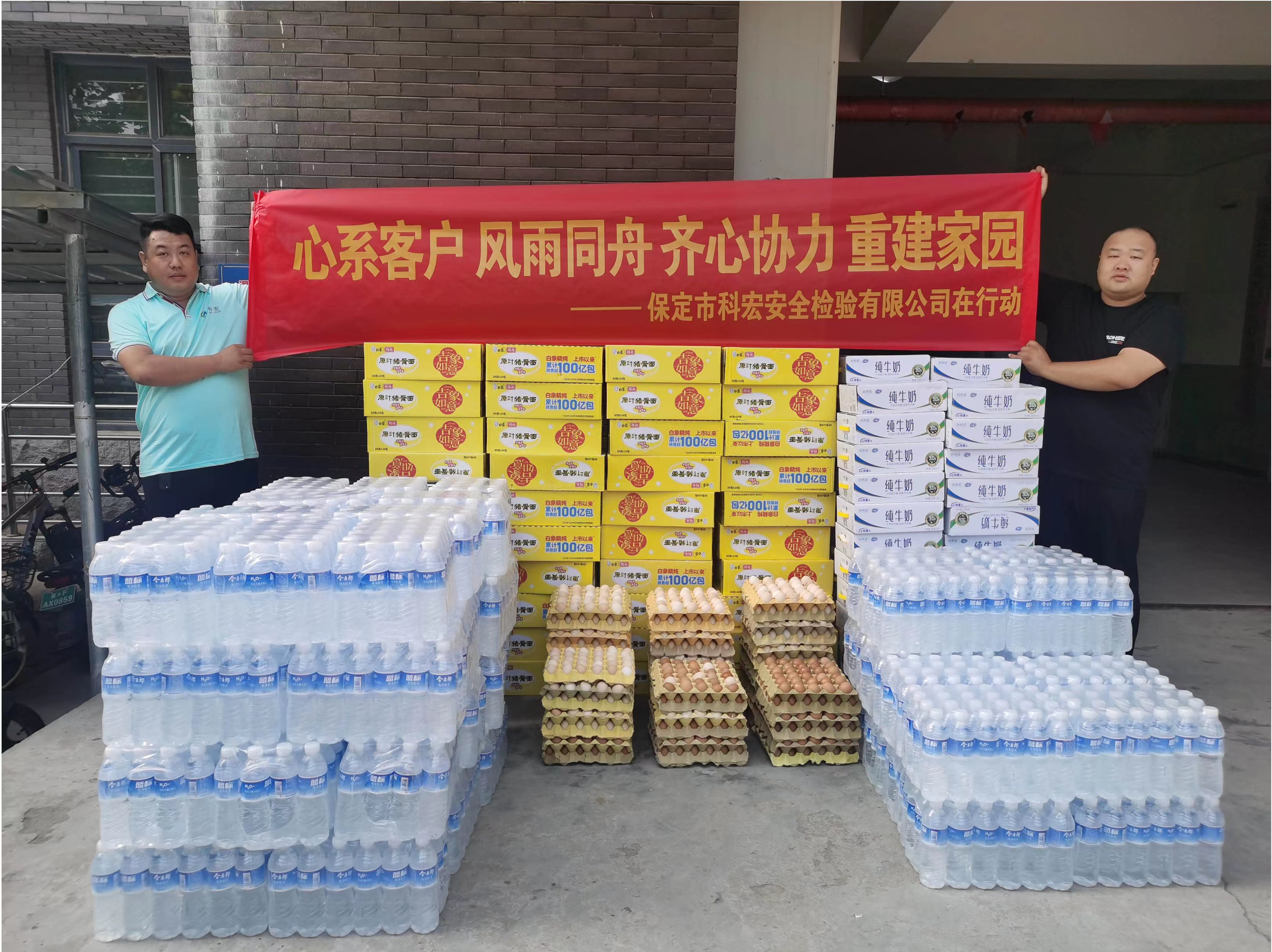 洪水无情人有情,自强降雨开始,公司总经理杜阳军便指示市场部人员积极联系客户,询问受洪水影响情况。当得知洪水逐步消退后,杜总立即安排行政部采购奶,蛋,水,方便面等生活物品,并协调车辆于2023年8月9日前往受洪水影响严重的企业运送支援物品。